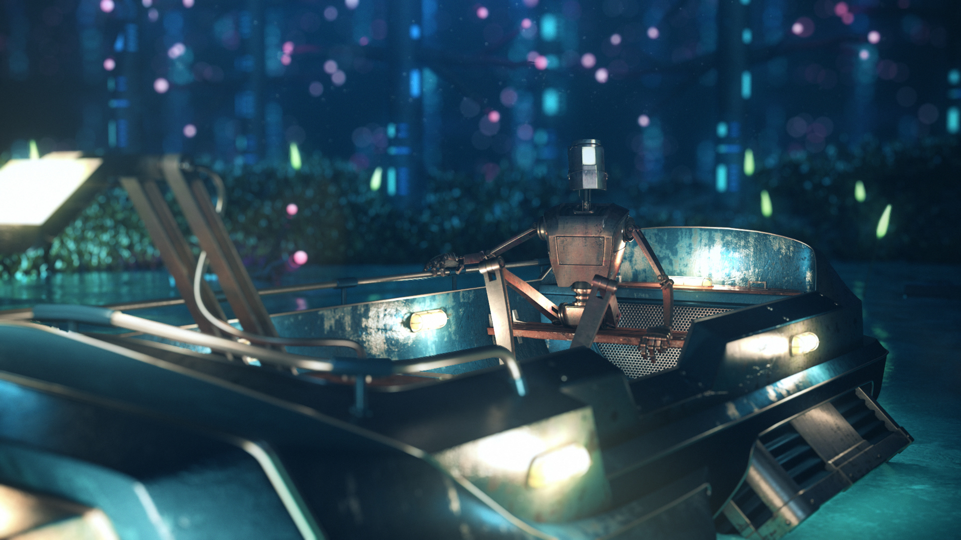 In a land where the trees and plants grow with memories of a mechanical age, sits a bog lit by lost technology. Bob, the last remaining caretaker, keeps things running by trolling the waters in search of small pods known as Bog Scallops. Created as a self-initiated project.