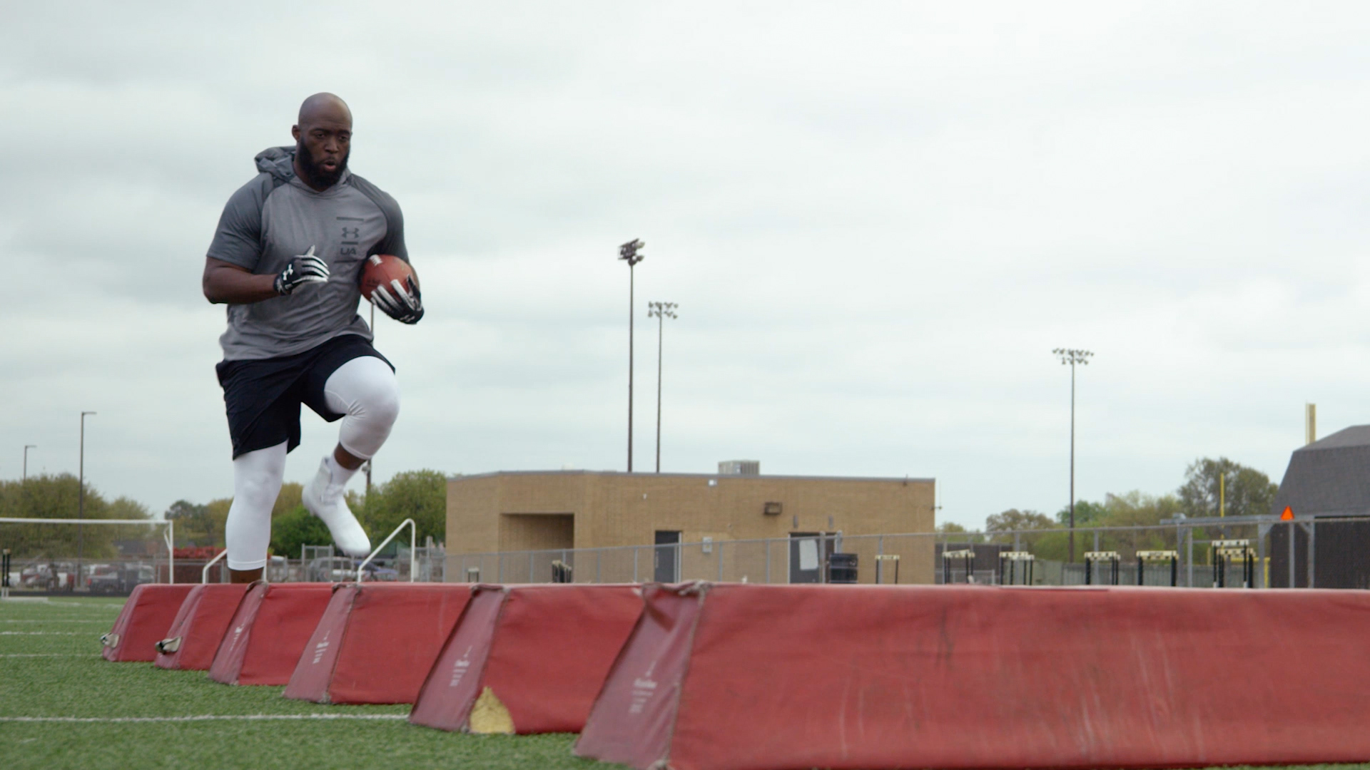 The live-action spot for Under Armour's Highlight MC Cleat, featuring Leonard Fournette. Already Been Chewed was tasked with the production of the spot — designing CG and VFX shots — transitions from live-action to CG, color grading, 2D graphics, and the final edit. My role involved designing, animating, and compositing the CG transitions and camera moves, color-match / light match CG shots with footage, shoe rig and grass impact animations, some editing, and the tread-melt-triangle effect.